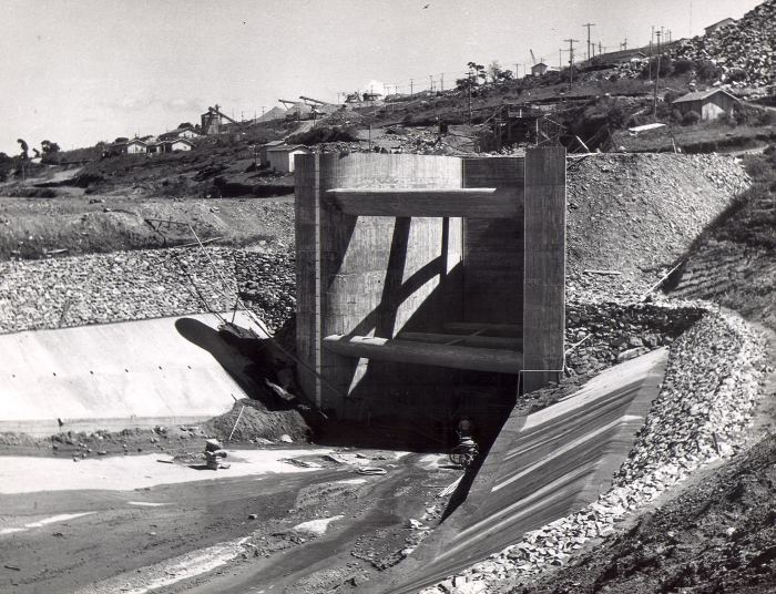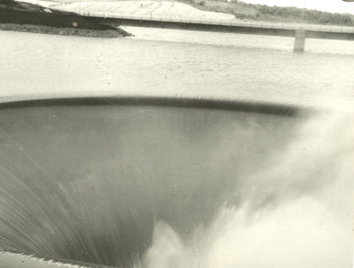 Após a enchente do Rio Pardo em 1977, foi reestudada a capacidade da vazão decamilenar pelos órgãos de descarga e chegaram à conclusão que eram insuficientes os mesmos e começaram a construir o vertedouros de superfície suplementar com as duas comportas tipo setor na margem esquerda da barragem de terra em 1988 e concluíram sua obra em setembro de 1992. A usina de Caconde possui potência instalada de 80,40 MW.